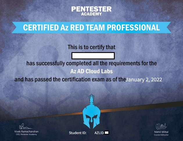 After the four weeks bootcamp from Pentester Academy, including lab access and live sessions with Nikhil Mittal I decided to take the CARTP exam and successfully passed it by compromising all resources in the Azure. Previously to the bootcamp I had some experience with Azure RM, but quite limited with AAD. Additionally I’ve done CRTP before, which I found it extremely useful for how to approach and prepare for the exam (read more about my experience with CRTP here).