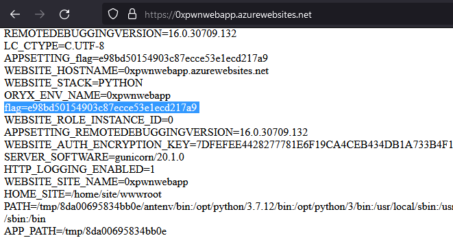For this tutorial, we will create and deploy a web application to Azure. The application is vulnerable to command injection. We will then store some dummy sensitive information in the environment variables and see how to dump this information and what else is stored there. Let’s begin!